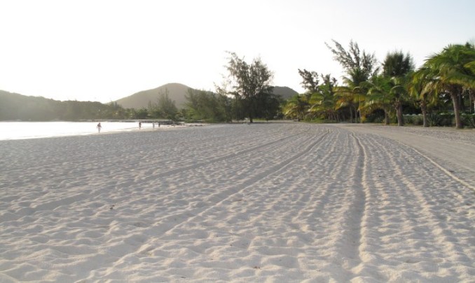 the crystal clear waters of the Caribbean Sea, offers a stunning view across the ocean and at the neighboring islands of St. Kitts, Nevis and Montserrat with its still active volcano.